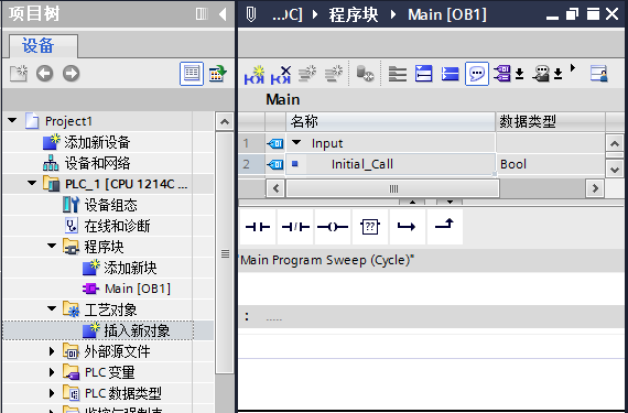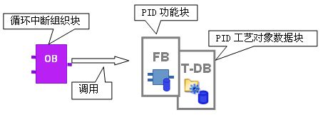 循环中断块可按一定周期产生中断,执行其中的程序。PID指令块定义了控制器的控制算法,随着循环中断块产生中断而周期性执行,其背景数据块用于定义输入输出参数,调试参数以及监控参数。此背景数据块并非普通数据块,需要在目录树视图的工艺对象中才能找到并定义。