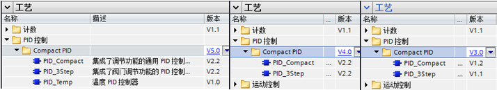 PID_Compact 的版本与 CPU 和 FW 的兼容性下表显示了 PID_Compact 的每个版本可用于哪种 CPU: