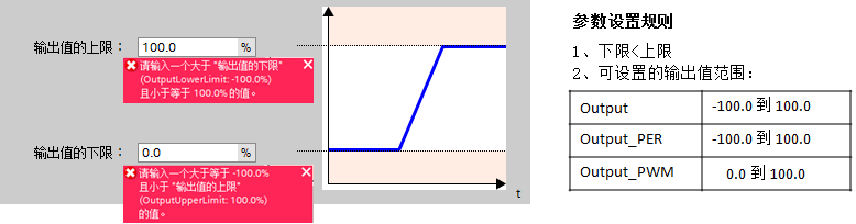 b. 过程值超过监视限值,会输出警告。过程值超过过程值限值,PID输出报错,切换工作模式。