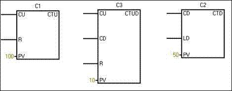 计数器指令的梯形图格式如下图所示。图1.计数器指令 - CU:增计数信号输入端;