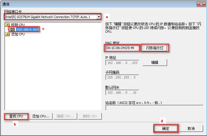 c. 在设备列表中跟据 CPU 的 IP 地址选择已连接的 CPU。