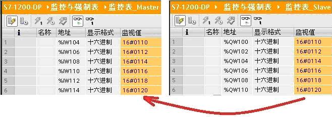 通过STEP7 V5.5 的变量表,以及STEP7 V11 的监控表, 查看DP通信结果。