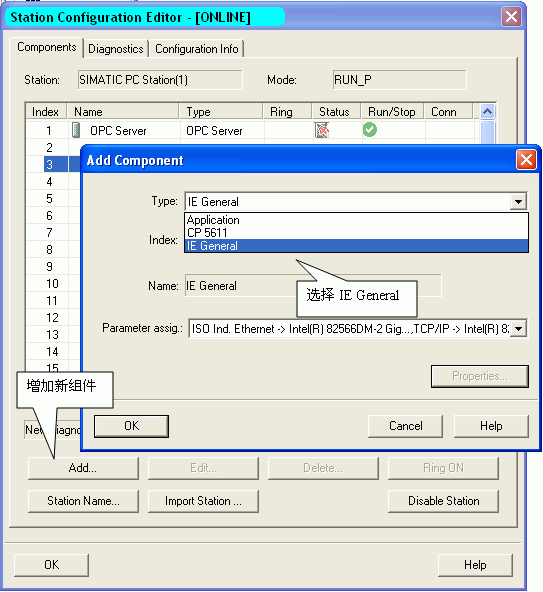 选择第三号插槽,点击Add按钮或鼠标右键选择添加,在添加组件窗口中选择IE General,如图7所示。