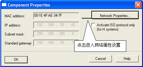 插入IE General后,随即会弹出组件属性对话框。点击Network Properties,进行网卡参数配置,如图8所示。