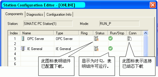 下载完成后在“Station Configuration Editor”中状态显示,如图14所示。在编程过程中,可以根据这些状态显示进行判断组态是否正确。