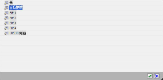 • S7-1200提供了6个过程映像分区。第一个过程映像分区“自动更新”指定用于每个扫描周期都自动更新的I/O,此为默认分配;接下来的4个分区PIP1、PIP2、PIP3和PIP4可用于将I/O过程映像更新分配给不同的中断事件。“PIP OB伺服”是给S7-1200运动控制的等时同步模式使用的。