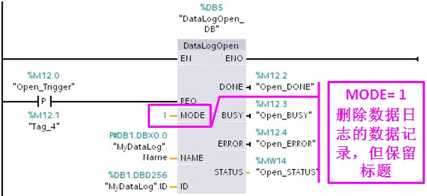 S7-1200 PLC执行RUN-STOP切换或PLC循环上电后会自动关闭数据日志文件。此外,执行“DataLogClose”指令可关闭已经打开的数据日志文件。