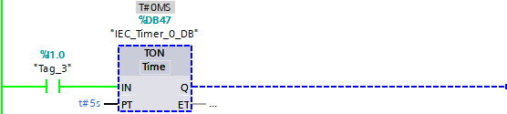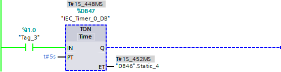 同时使用背景DB的Q点以及定时器功能框的Q点连接变量