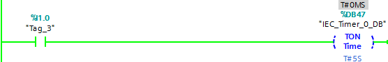 阶段2.当定时时间到发生在①所处的位置,在第一行的"IEC_Timer_0_DB".Q处定时器更新,更新后,"IEC_Timer_0_DB".Q=True,取反为False,此时作为TON的输入,使得定时器复位,第二行的"IEC_Timer_0_DB".Q=False,输出的"DB2".脉冲=False,到下周期时就回到了阶段1;