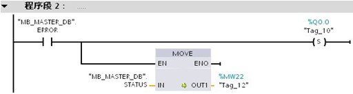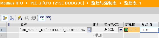 执行“MB_MASTER”指令,总是显示输出位“Busy”=1,为什么?因为端口正忙于处理传送请求。出现该错误时请检查“MB_MASTER“指令输入位”REQ“是否为上升沿触发,或是否有其它的多个“MB_MASTER”指令在执行。 通过执行“MB_MASTER”指令无法写入或读取Modbus RTU丛站地址的数据,但程序中监视“MB_MASTER”指令错误位“Error”=0,错误代码“STATUS”=16#0,为什么?“MB_MASTER”指令上一请求因错误而终止后,ERROR 位将保持为 TRUE 一个扫描周期时间,并且 STATUS 参数中的错误代码值仅在 ERROR =TRUE 的一个扫描周期内有效,因此无法通过程序或监控表查看到。可采用如下所示的编程方式将ERROR 和 STATUS 参数读出。 图13 捕捉错误代码 S7-1200 作为Modbus RTU 主站,如何对Modbus RTU从站进行0-65535扩展寻址?通常,“MB_MASTER”指令的背景数据块“MB_MASTER_DB”中的“EXTENDED_ADDRESSING”默认为0,可以对Modbus RTU从站地址0-247进行访问。 将“MB_MASTER”指令的背景数据块“MB_MASTER_DB”中的“EXTENDED_ADDRESSING”设置为1,才能对Modbus RTU从站进行0-65535扩展寻址。可按照如下步骤设置“EXTENDED_ADDRESSING”: 首先找到“系统块”→“程序资源”,双击“MB_MASTER_DB”,在“MB_MASTER”指令的背景数据块“MB_MASTER_DB”中查看“EXTENDED_ADDRESSING”。 图14 扩展地址区 在“监控表”内输入“MB_MASTER_DB.EXTENDED_ADDRESSING”,将该位置1。 图15 修改变量