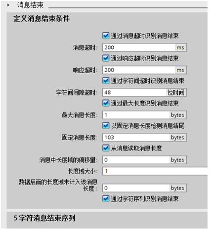 注意:与多个起始条件的判断不同,检查多个结束条件时,任何一个条件满足,信息接收结束。