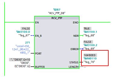 如果发送数据一包就大于1024字节时,缓冲区接收到数据到1024字节时,虽然没有收到结束字符,数据由缓存区送给CPU,但会报错16#80E0,如下图。