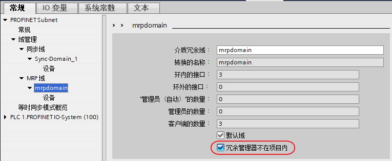 TIA V15.1在域管理视图添加了冗余管理器不在项目内选项,允许管理器不在项目内,编译程序只会提示必须组态管理员的警告,这样就需要进入交换机配置界面进行冗余环网的配置,如下图所示。注意如果项目中不组态交换机就不能再配置拓扑了,不然会报伙伴端口错误。