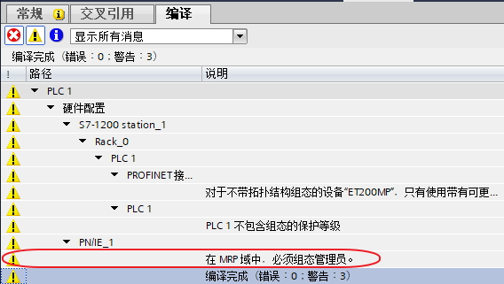 拓扑组态不是MRP正常工作的必要条件,但组态拓扑有助于在出现故障时进行故障排除。