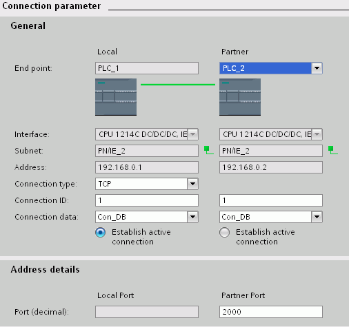 :定义通信伙伴方的端口号为:2000;如果选用的是 ISO on TCP 协议,则需要设定的TSAP 地址(ASCII 形式),本地 PLC_1可以设置成“PLC1”,伙伴方 PLC_2 可以设置成“PLC2”。