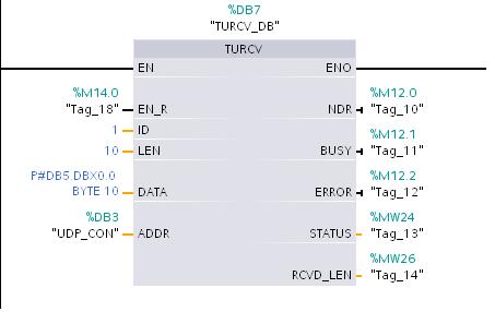 4.在 S7-1200 中调用并配置“TCON”、“TUSEND”、“TURCV” 通信指令