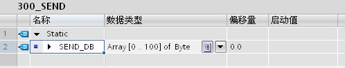 通过“项目树”>“300pn”>“程序块”>“添加新块”,选择“数据块” 创建 DB4 块,点击“确定”键,定义发送数据区为 101 个字节的数组,如图20所示,结果如图21所示。