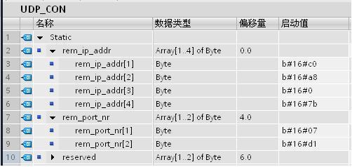 图8. 创建 UDP 连接参数数据块