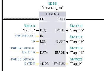 ⑤调用 “TUSEND” 在 OB1 内调用 发送 10 个字节数据到 300pn 中