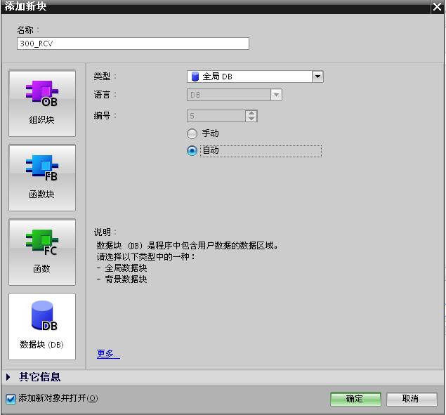 图25. 创建接收数据区 DB5 块