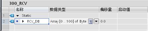 通过“项目树”>“300pn”>“程序块”>“添加新块”,选择“数据块” 创建 DB5 块,点击“确定”键,定义接收数据区为 101 个字节的数组,如图25所示,结果如图26所示。