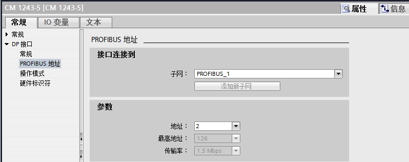 组态 CM1243-5,为 CM1243-5 添加子网 PROFIBUS_1,分配站地址为 2。如图 2 所示。