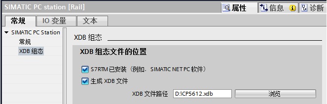 在 PC 站的属性框中,在“XDB 组态”中勾选“生成 XDB 文件”,指定 XDB 文件路径,再将 PC 站编译,在指定路径中生成一个 XDB 文件。如图 9 所示。