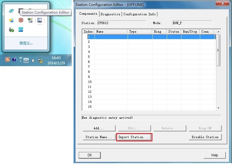从电脑的右下角双击“Station Configuration Editor”,进入 Station Configuration Editor 对话框,点击“Import Station...”,将图 9 生成的 XDB 文件导入进来,如图 10 所示。