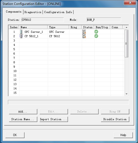 将 S7-1200 项目下载到 PLC 中,此时 CM1243-5 的 DIAG 指示灯还是红闪,表示 DP 主从通信并未建立起来,这是因为 OPC Server 默认处于未激活状态,PC Station 作为 DP 从站还没有生效,需要启动一个 OPC 客户端来激活服务器。按以下步骤启动一个 OPC 客户端。