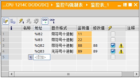 在 S7-1200 项目的监控表中监视相应的变量,如图 14所示。