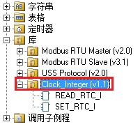 成功添加指令库后,用户可以在STEP7 Micro/win的指令树中找到‘Clock_Integer (v1.1)'