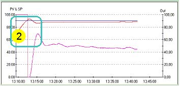 (3)当过程变量达到给定值且在给定值上下波动,将调好的比例系数调整到50%~80%后,由大到小减小积分时间,直到过程值与设定值相等或无限接近